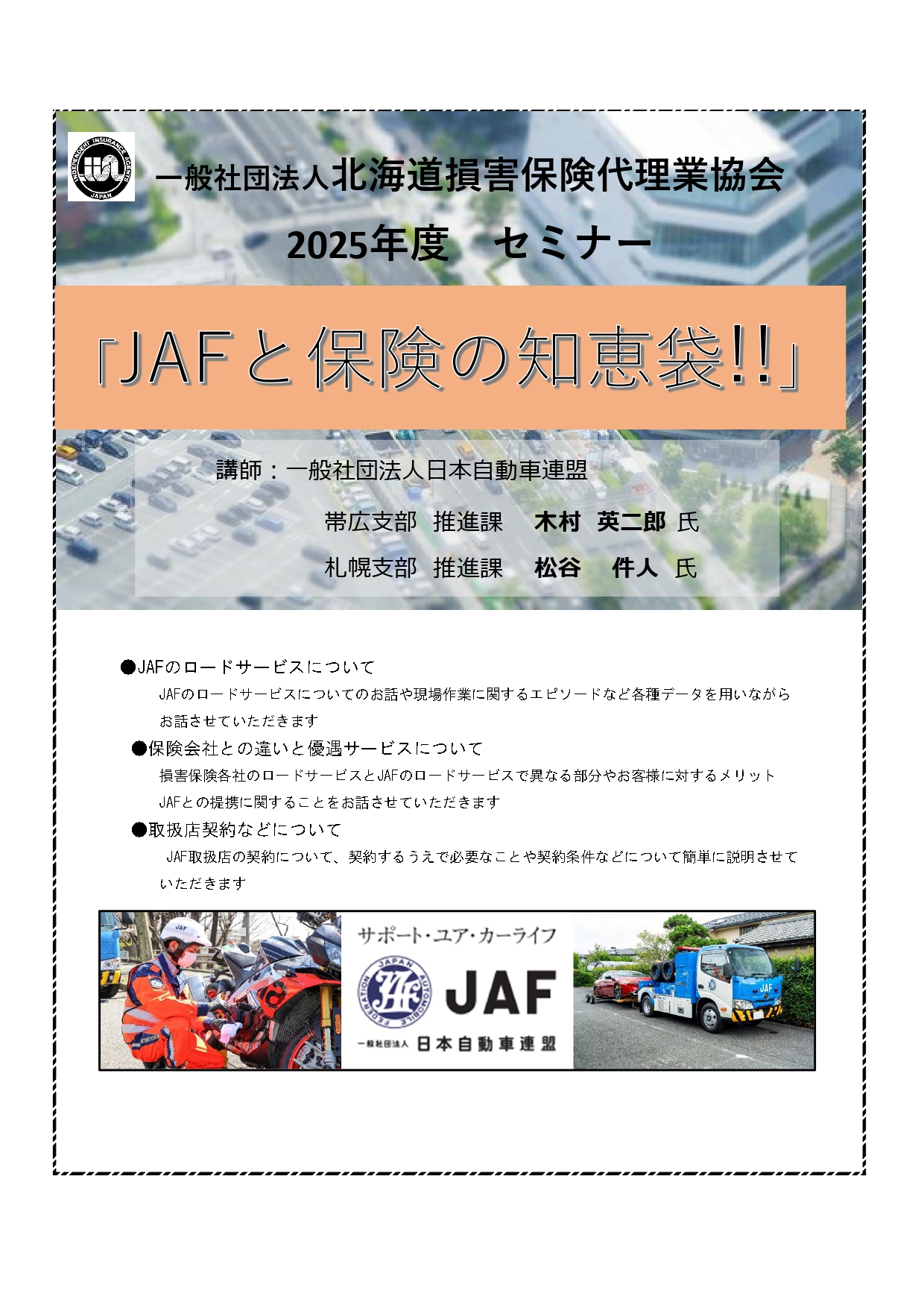 一般社団法人 日本自動車連盟(JAF)様を講師にお招きしセミナーを開催。