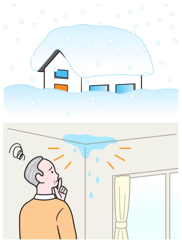 • 雪災: 雪の重みで軒樋(のきどい)が曲がった、カーポートが倒壊した。