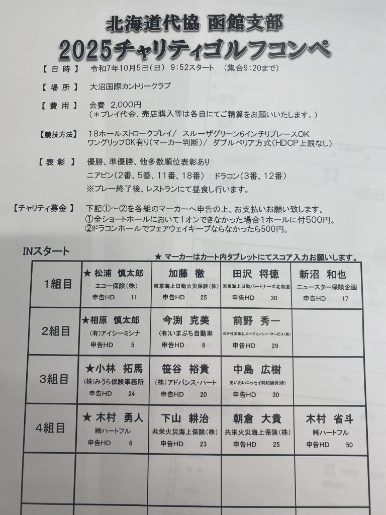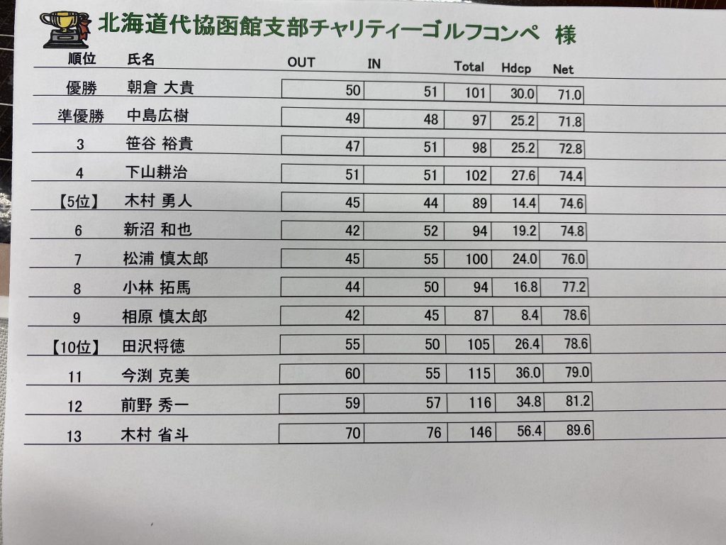 今年度の優勝者は共栄火災海上函館支社社員の朝倉大貴様です スコアは71でした おめでとうございます!