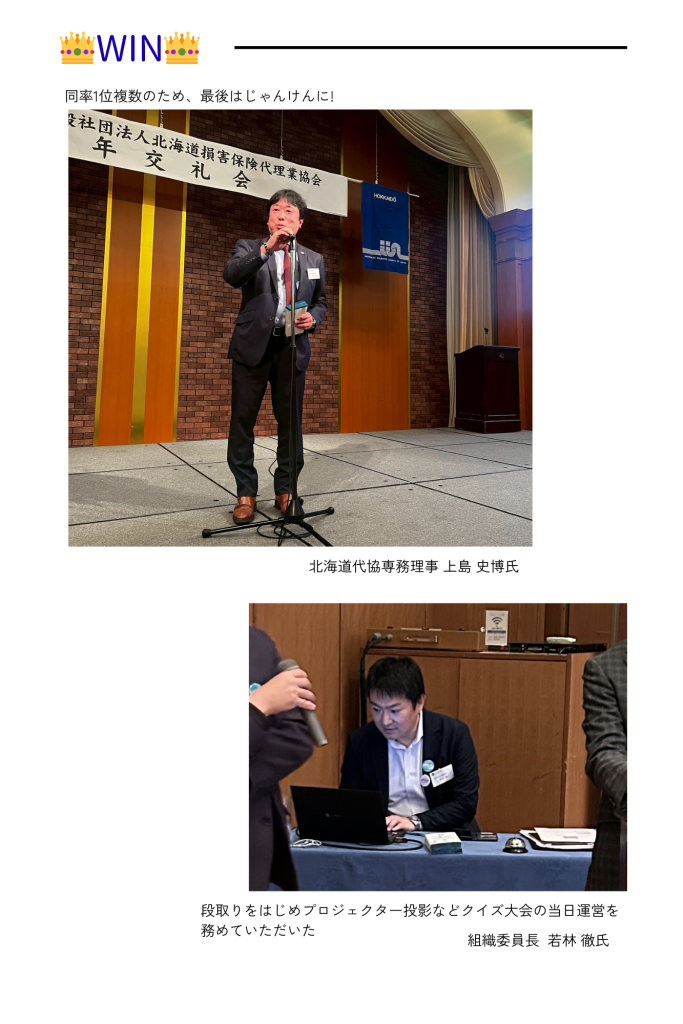 プロジェクターに投影されたお題の中には、北海道代協の活動についての出題もありましたが、