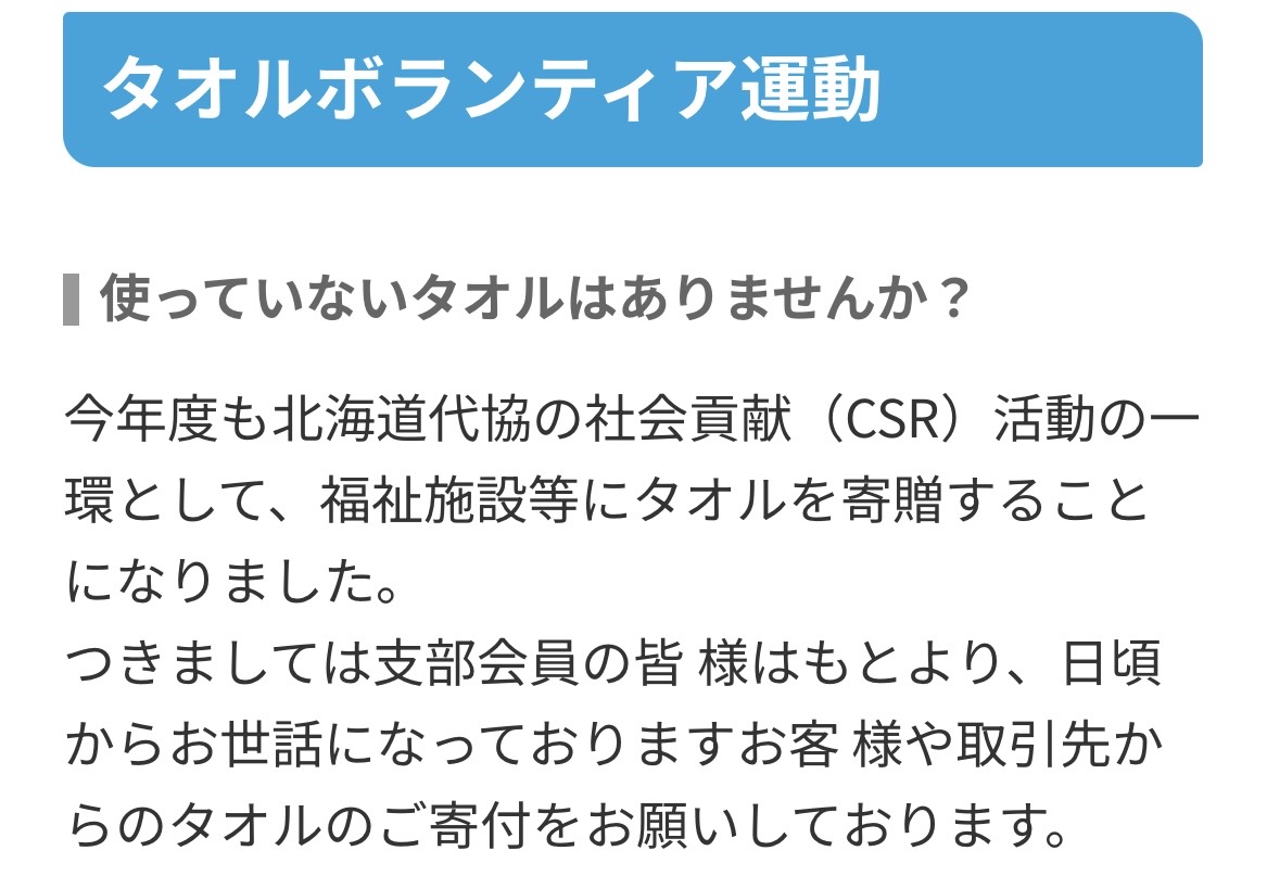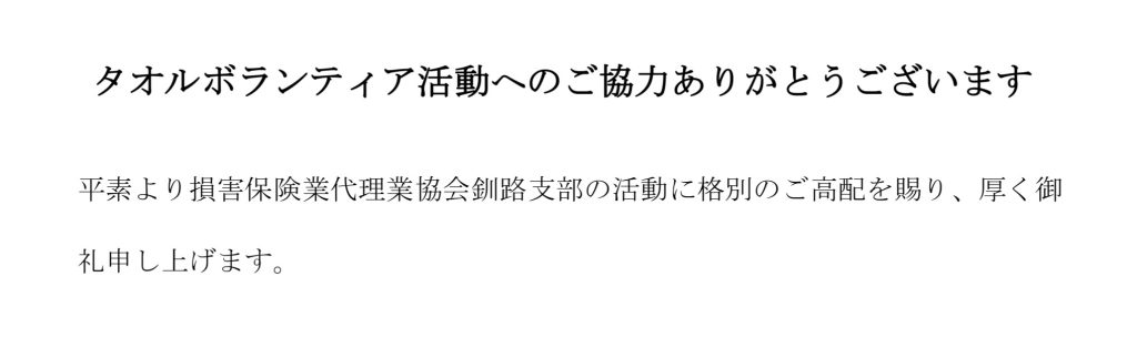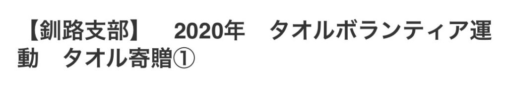 【釧路支部】 2020年 タオルボランティア運動 タオル寄贈① | 北海道代協 支部活動告知・報告ブログ