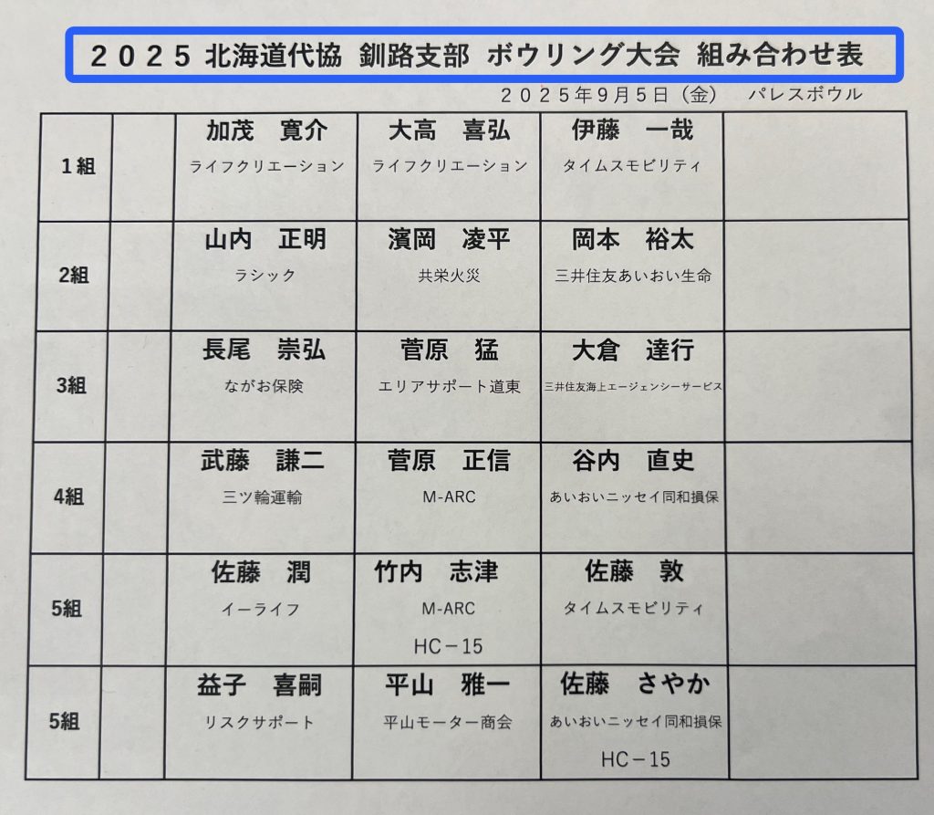 ◇場 所:釧路パレスボウル(釧路市幸町10-1 0154-24-0311)
