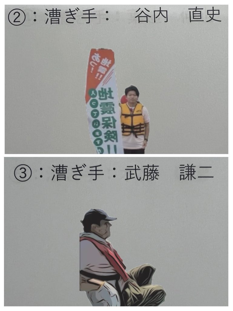 ②③④⑤漕ぎ手(4人):船の推進力を生み出す中心的役割。