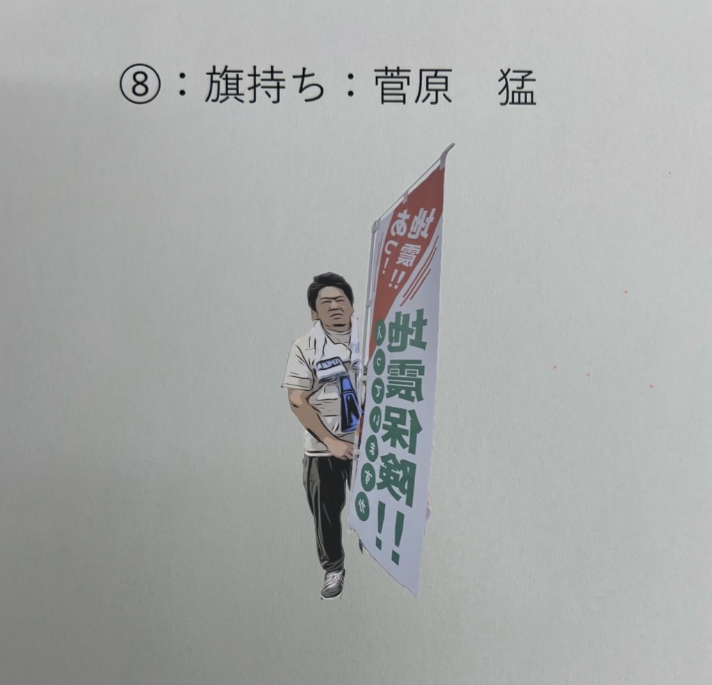 ⑧舟尾の旗持ち進行方向指示役:チームの目となる存在。