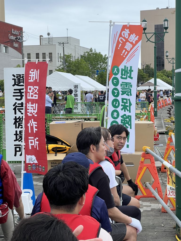 レースはタイムアウトとなりましたが、気を取り戻し、レース後はお祭りイベント会場にて地震保険のPRタイムをいただきました!!